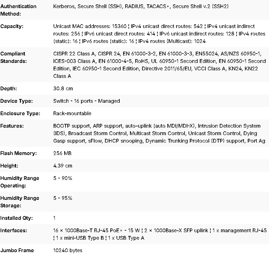Catalyst 1000 16port GE, Full POE, 2x1G SFP