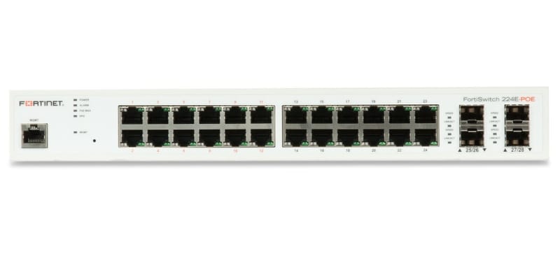 Layer 2/3 FortiGate switch controller compatible PoE+ switch with 24 x GE RJ45 ports, 4 x GE SFP, with automatic Max 180W POE output limit