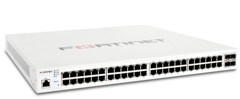 Layer 2/3 FortiGate switch controller compatible PoE+ switch with 48 x GE RJ45 ports, 4 x GE SFP, with automatic Max 370W POE output limit