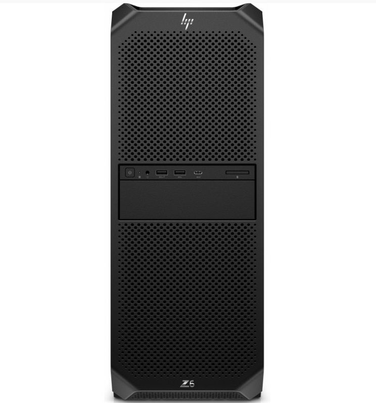 HP Z6 G5 A workstation, featuring an AMD Ryzen Threadripper PRO 7965WX processor, 64 GB of DDR5 ECC RAM, and a 1 TB PCIe Gen4 SSD * Windows 11 Pro * Internal 1450 W power supply, up to 90% efficiency, active PFC * Front Panel 4 USB Type-A 5Gbps signaling rate (1 charging); 1 headphone/microphone combo jack * Realtek ALC3205-CG * No integrated graphics (requires a separate graphics card)