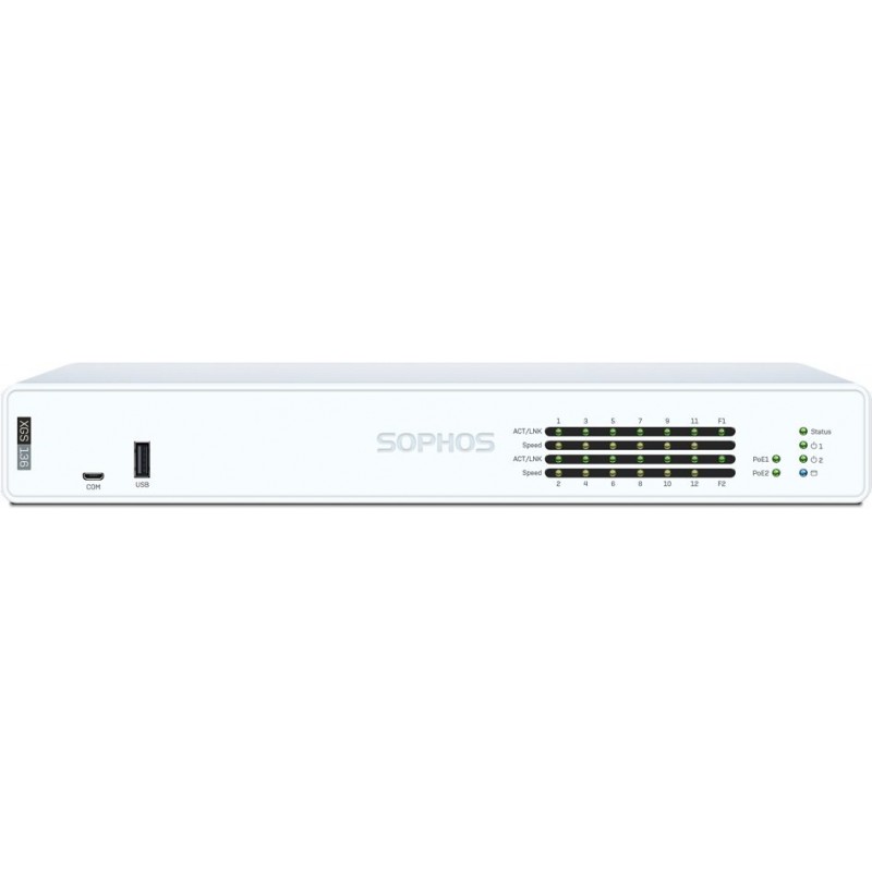 XGS 136 HW Appliance with 10 GE + 2x 2.5GE with PoE (30W each) + 2 SFP ports, 1 expansion bay for optional 3G/4G module, SSD + Base License (incl. FW, VPN & Wireless) for unlimited users + power cable